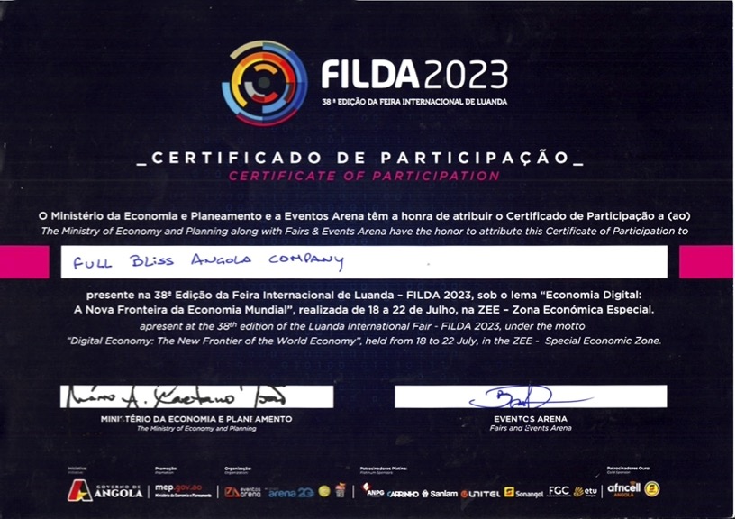 PARTICIPA??O DE FILDA 2024Duranate os dias de 23 até 28 de julho de 2024, a?FULL BLISS ANGOLA COMPANY esteve presente mais uma vez nesta que foi a 39a edi??o da Feira Internacional de Luand...